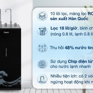 • Máy lọc nước RO nóng lạnh Kangaroo KG10A12 10 lõi có 3 chế độ nước nóng – nguội – lạnh, màng lọc RO Vortex 100 GPD xuất xứ Hàn Quốc cho công suất lọc lớn, tạo nước Hydrogen chống oxy hóa, thương hiệu Kangaroo – Việt Nam.