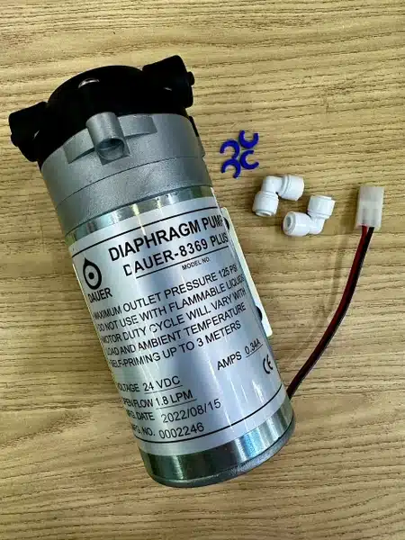 – Bơm tăng áp máy lọc nước RO 24V/ 125 PSI chất lượng cao giúp tăng áp lực nước bằng lực hút/ đẩy nhằm cung cấp đủ nước để giữ cho hệ thống lọc thẩm thấu ngược RO đạt hiệu suất tốt và ổn định.
