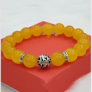 Vòng tay phong thủy đá mã não vàng MS349 mix bi hoa cúc