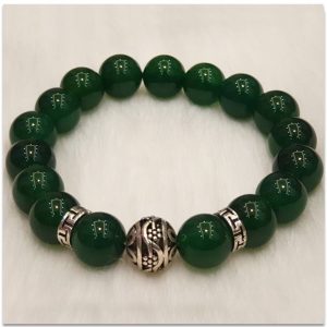 Vòng tay phong thủy đá mã não xanh lá MS354 mix hạt bi khắc hoa cúc
