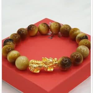 Vòng tay phong thủy đá mắt hổ vàng MS359 Tỳ hưu vàng-10MM